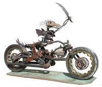 As a native Arizonan, John Wilhelm's drawings and paintings often depict the heritage, landscapes and animals of the region. He's a prolific self-taught artist who works in acrylic, pencil, ink and scratchboard etchings, but most often in sculptures crafted from steel and stone. These pieces are usually "found object" art comprised of used, discarded and recycled industrial or automotive parts. These sculptures are frequently whimsical animal figures incorporating natural rock and rusty steel and are extremely durable as outdoor art. Thanks to the nature of the materials used, no two pieces are identical and every piece has a unique character which can rarely be duplicated. The techniques employed to build these pieces range from traditional blacksmith methods to modern welding practices. John's figures using railroad spikes originated in the 1970's and evolved into the stone and steel sculptures of today, and can be found in private collections from coast to coast.