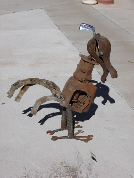 With stove legs for a head and a Chevy transmission as a body, this bird gets his name from his genuine Sam Snead top knot.