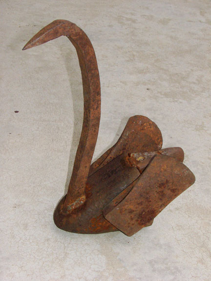 Rusty steel swan welded together from just five discarded tools found in the forest near Fort Apache.